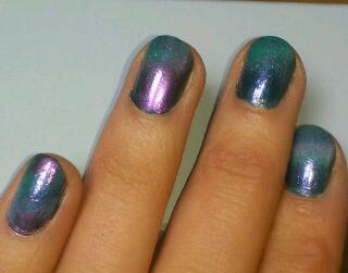 4. Die zweite Farbe folgt so gleich! Wieder die gleiche Prozedur: linsengroße Tropfen Lack auf die Folie, schmieren, auf den Nagel tupfen (auf bereits verwendeten Stellen oder neuen, das ist egal)